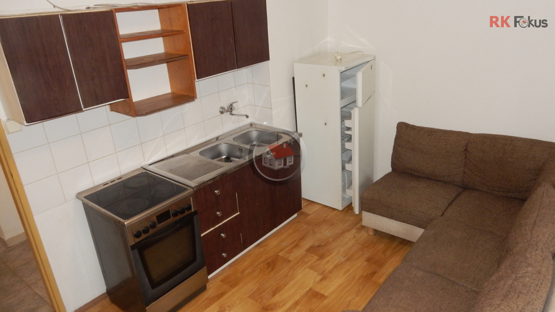 | Popis vybavení | Kuchyňská linka, pračka, lednice s mrazákem, sedačka |