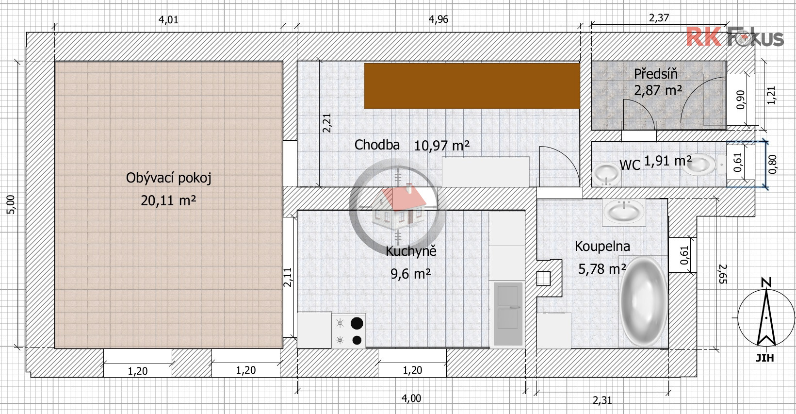 | Popis vybavení | Kuchyňská linka, plynový sporák, myčka, vestavná trouba, stůl a židle, pohovka, konferenční stolek, tv stolek, plynový kotel se zásobníkem na vodu |